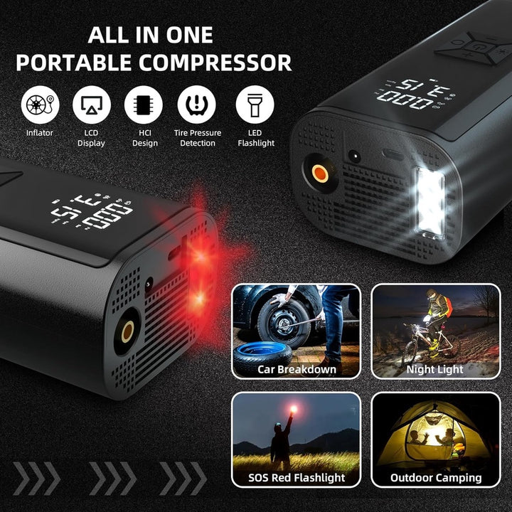يضخ الهواء بدقة وكفاءة لإطارات العربيات، الموتوسيكلات، العجل، الكرات، وغيره.