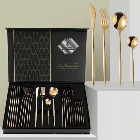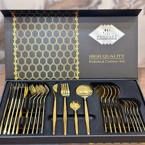 طقم معالق وشوك وسكاكين فاخر – 24 قطعة باللون الذهبي