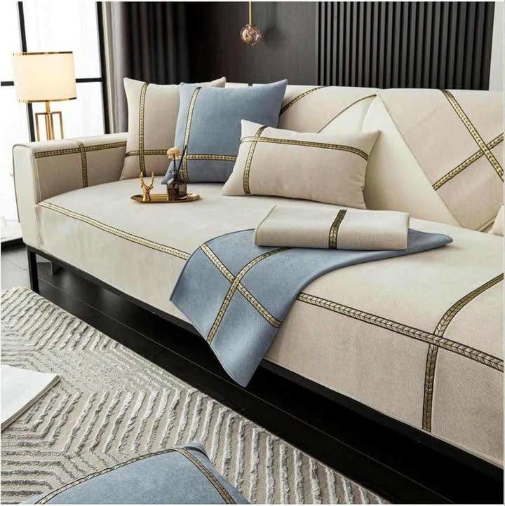 الطقم يأتي مع 3 مناديل تزيينية تضيف لمسة جمال إضافية وتكمل الشكل الأنيق للكنبة.