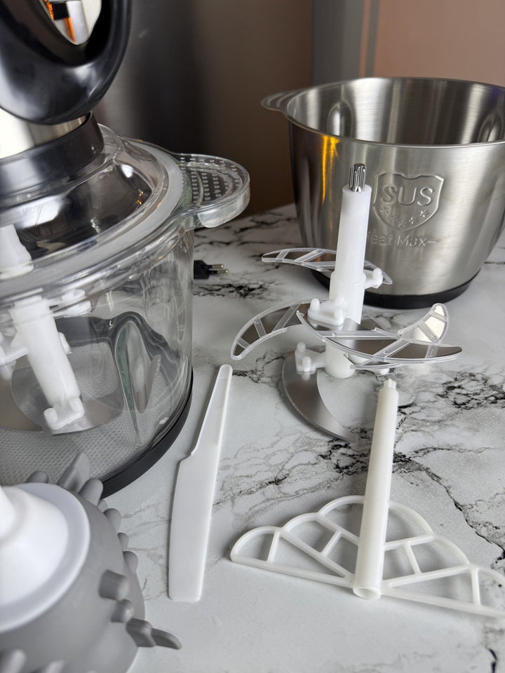 مزودة بشفرات قوية لفرم مثالي، بالإضافة إلى ملحقات للتقليب، مضرب بيض، وجزء مخصص لتقشير الثوم. -